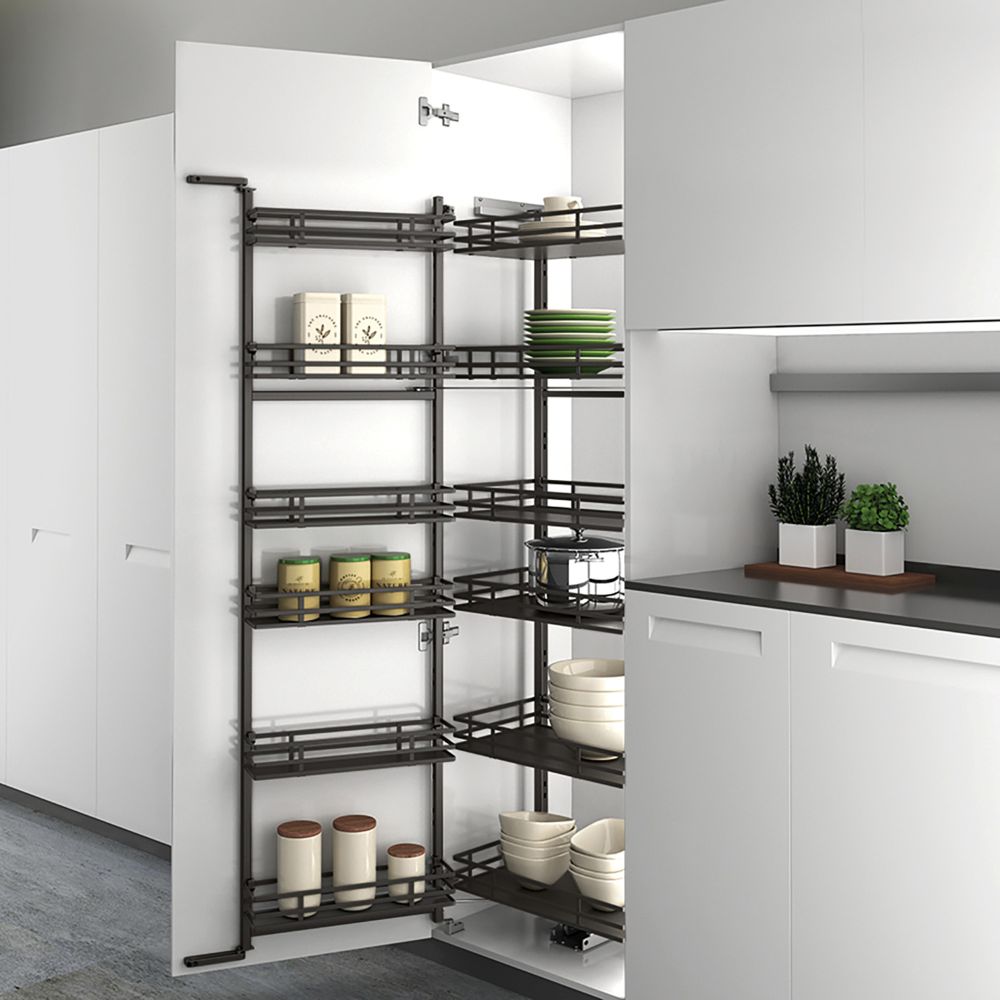 For even greater convenience, the single swing-out version extends the baskets outward with the door, offering effortless access to stored items. Designed to work with hinges up to a 115° opening angle, the ISEO Larder is the smart solution for stylish, organised kitchens.